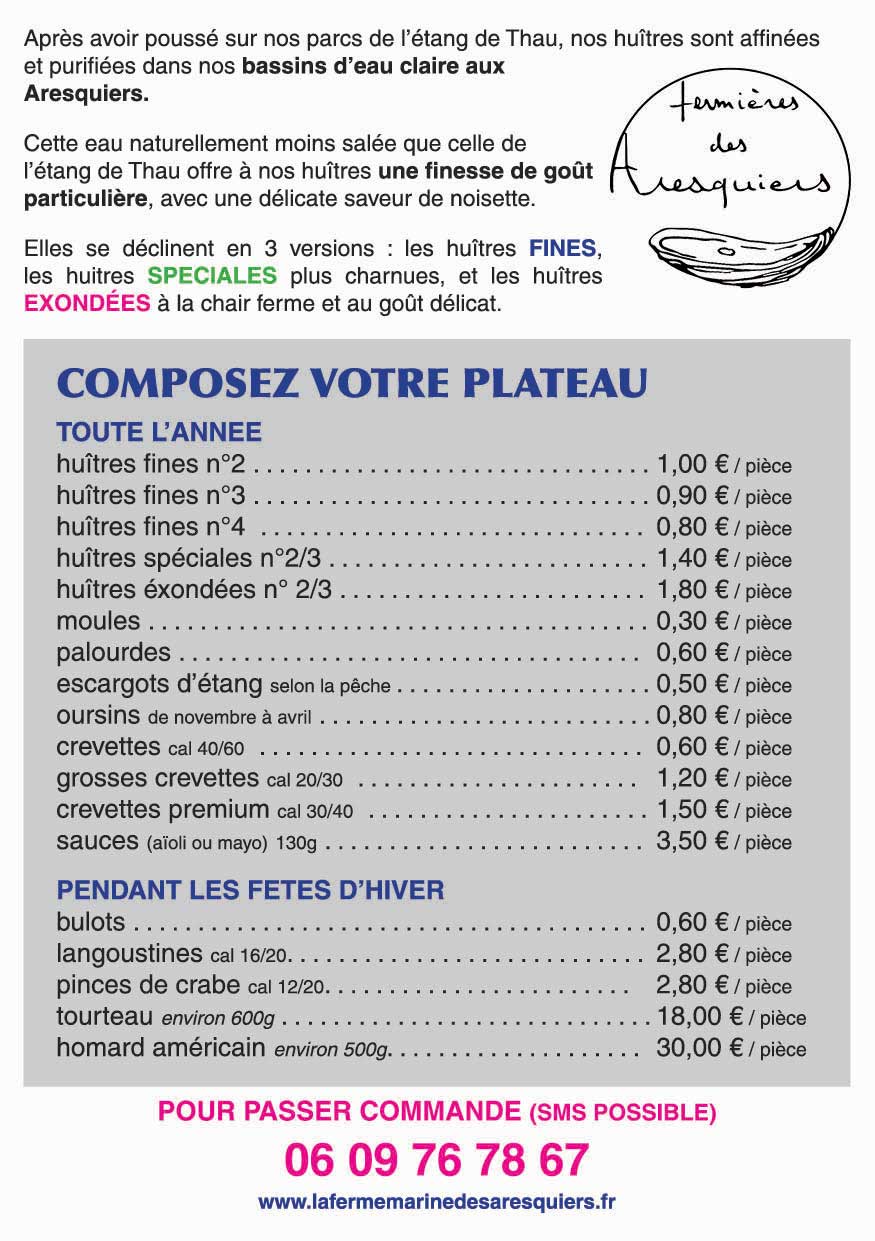 Sur commande par téléphone ou sms au 06 09 76 78 67